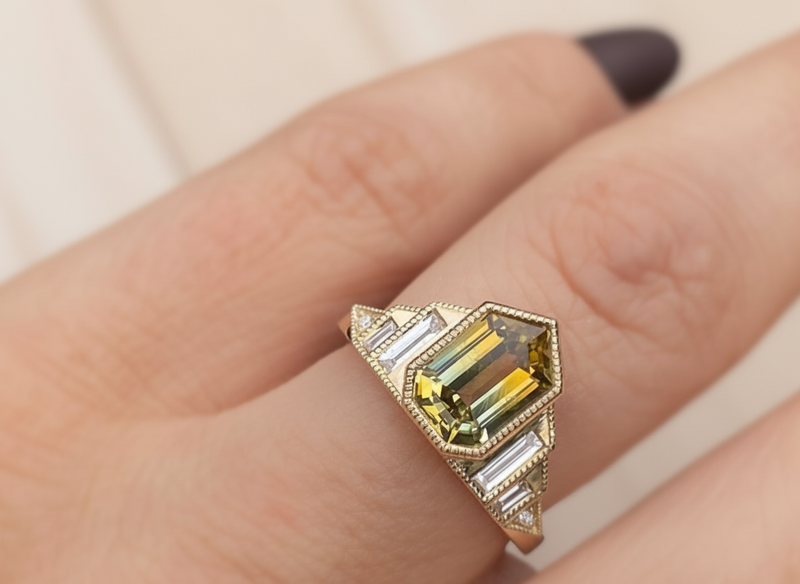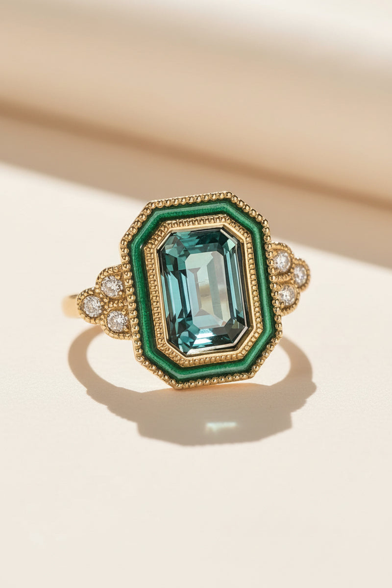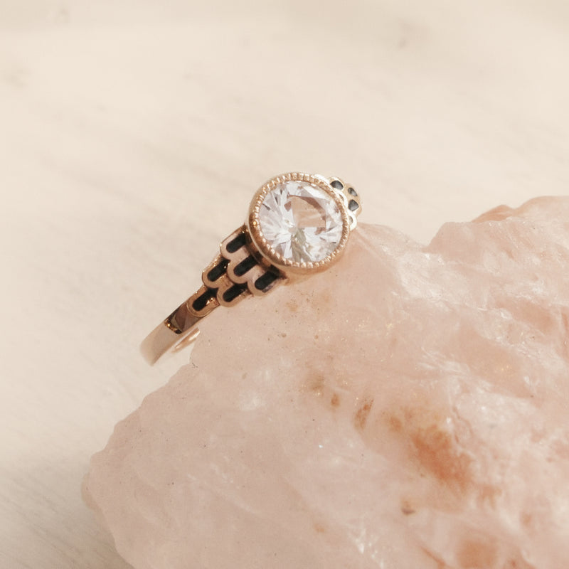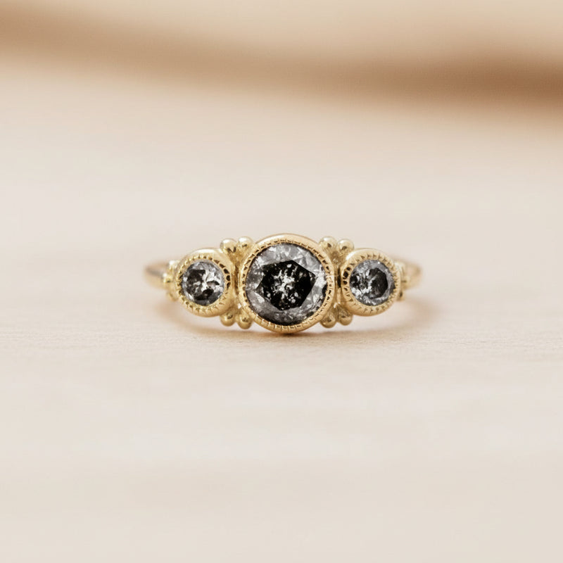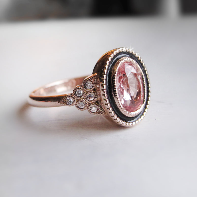 A custom Wexgold hexagon solitaire with miligrain in rose gold can be soon ordered in our ring builder. Starting from $2500CAD (plus cost of centre stone)