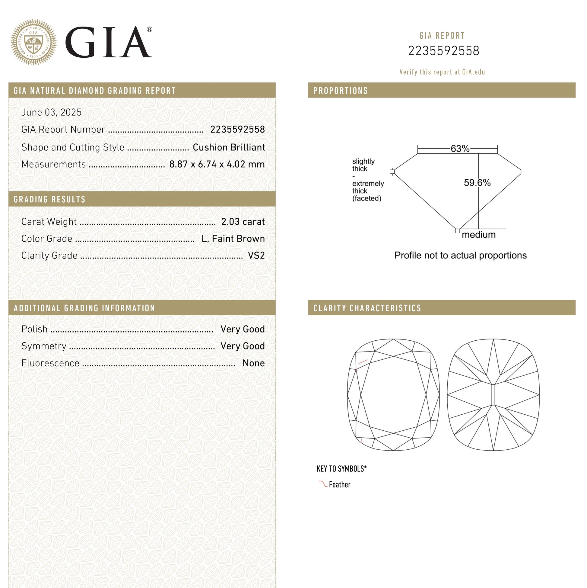 2.03ct 8.87x6.74x4.02mm GIA VS2 L Cushion Brilliant 27320-01