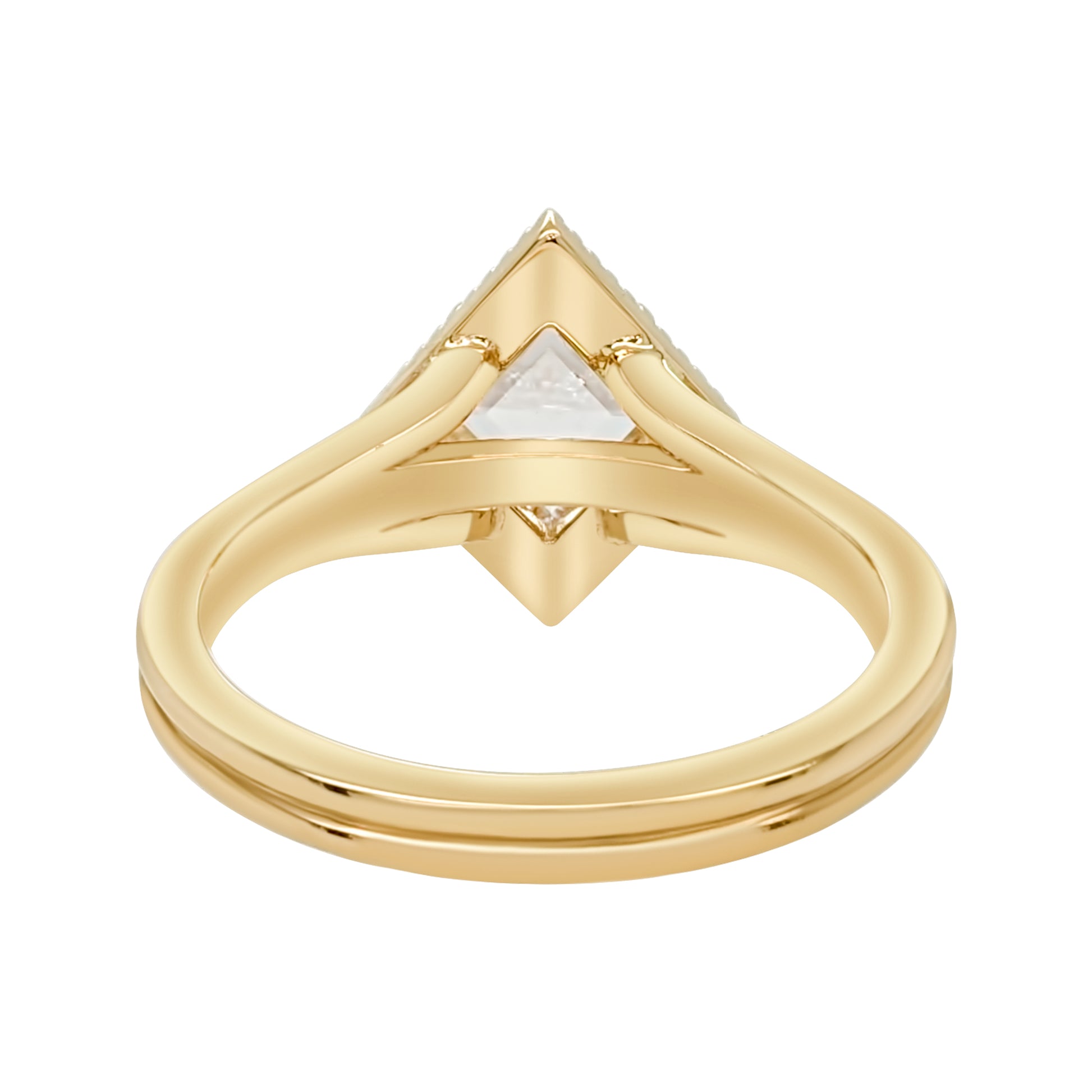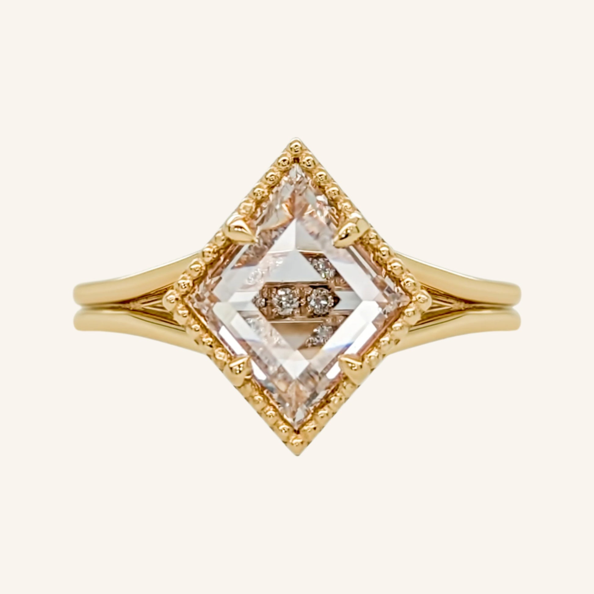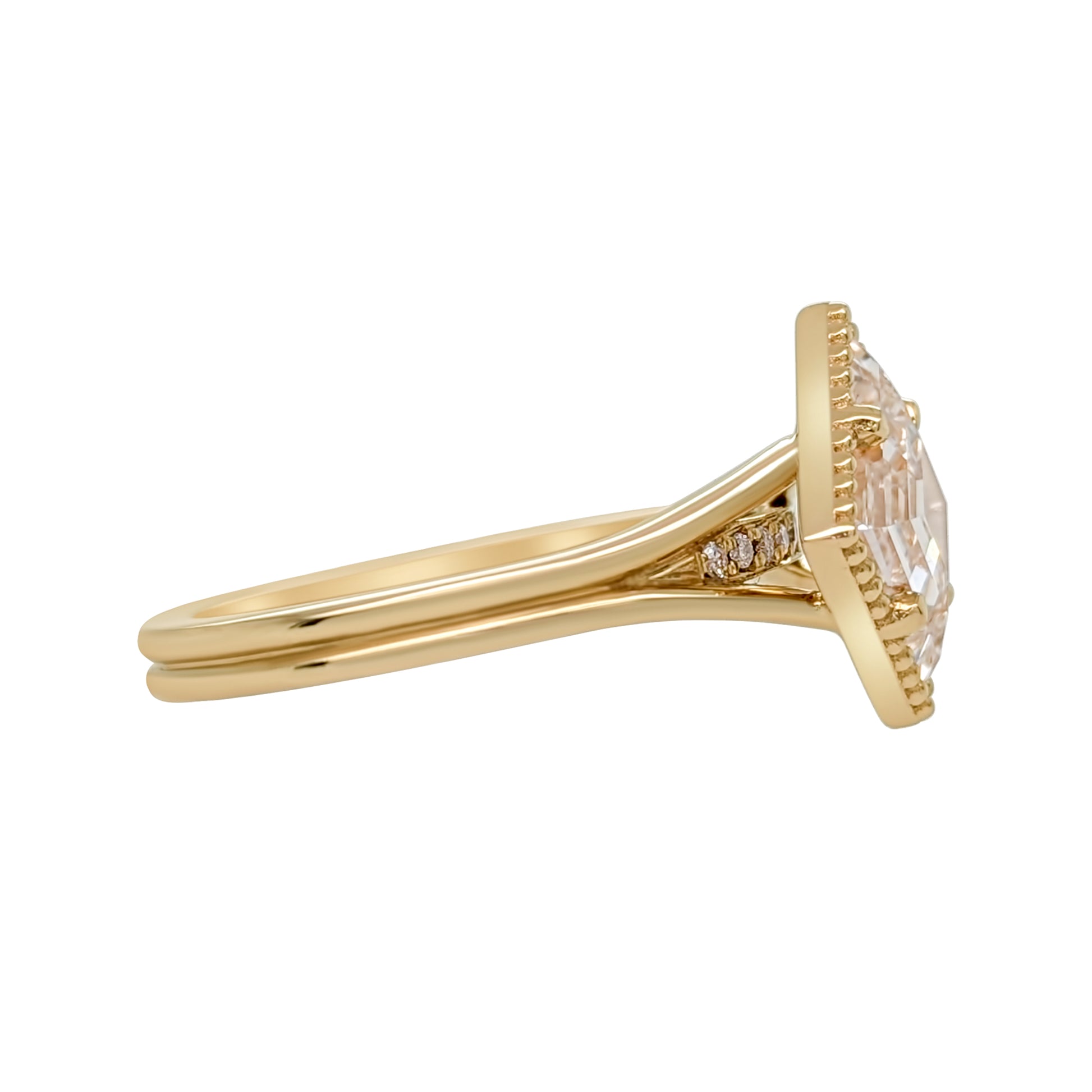If you’ve always wanted something different from the classic engagement ring, the AVI ring is sure to capture hearts the moment anyone sees it. The lab grown diamond sparkles like nothing else, and the split shank with the hidden diamonds is such a delightful surprise! It's like wearing a little secret on your finger. The portrait cut makes the lab diamond look like it's floating, and the whimsical details are a conversation starter.