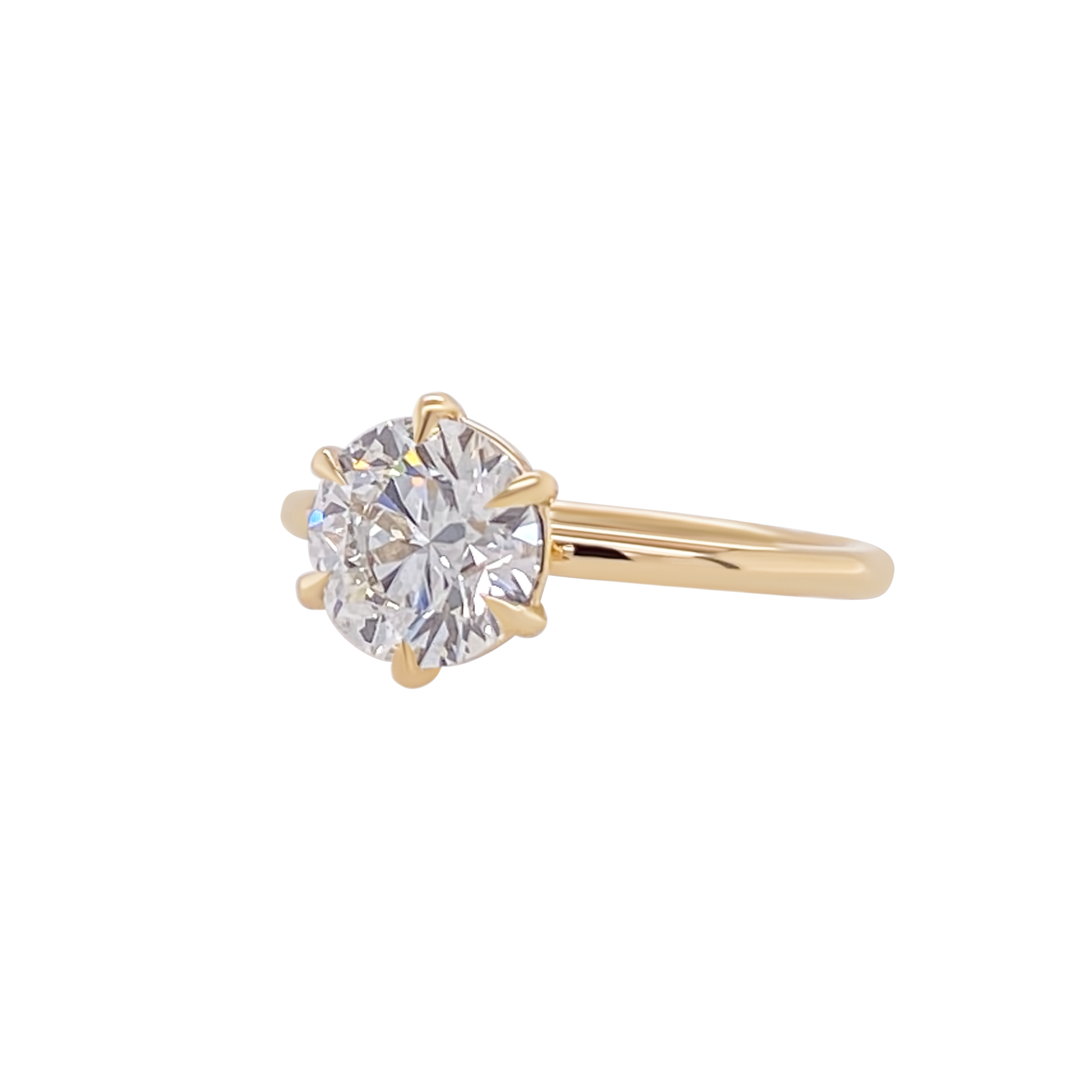 This classic six prong design solitaire ring features a sleek slim band and very low profile, making it perfect no fuss engagement ring for those who want to show off their stone, and nothing else.