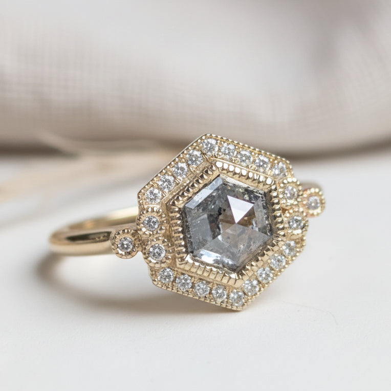 Canadian Salt and Pepper Hexagon Diamond Ring